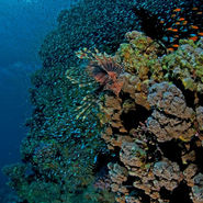 Dramatische Tiefen, imposante Riffkanten und lichtdurchflutete Schluchten prägen das Unterwasserbild. Neben Hart- und Weichkorallen begegnen Tauchern hier Muränen, Barrakudas, Schildkröten, Napoleons und große Schwärme an Rifffischen. Mit etwas Glück lassen sich auch Adlerrochen und Delfine beobachten.